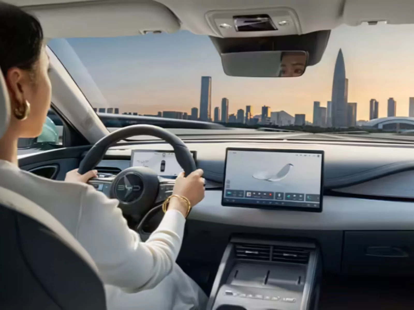 O ambiente interno segue o tema “Ocean Family”, com superfícies curvas e aspecto mais fluido. O painel é totalmente digital e a tela central de 15,6 polegadas ocupa grande parte da cabine, facilitando o acesso às funções do veículo. Esta é a quarta frase: o carro traz um interior focado em ergonomia e tecnologia. Além disso, a área do câmbio tem layout circular com alavanca compacta estilo toggle e botões ao redor, o que melhora a usabilidade no dia a dia.